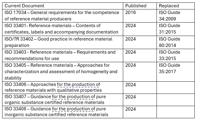 ISO 33401:2024 – Reference materials — Contents of certificates, labels and accompanying documentation is an international standard intended to compliment ISO 17034:2016 – General requirements for the competence of reference material producers.