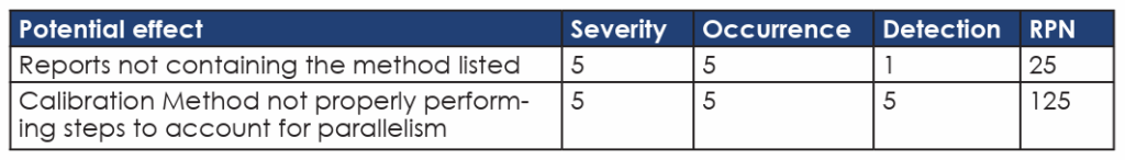 A prime example would be issues with the certificates or reports produced by an ISO/IEC 17025 accredited organization. These issues may have a lower detection rate due to the authorized staff member who reviews and approves certificates and reports before publication. There are potentially several areas that could go wrong for certificates or reports, but in using the multiplicative of the three terms indicated, we can see our risks a bit clearer than the other examples when defined as follows: